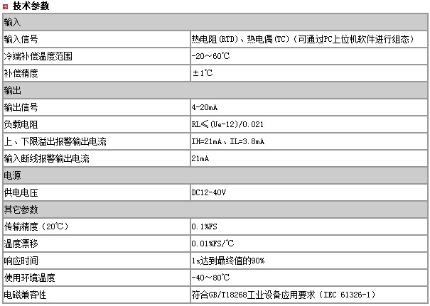 冷端补偿温度范围: -20~60℃