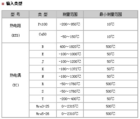 输入:2种热电阻(RTD);10种热电偶(TC)。